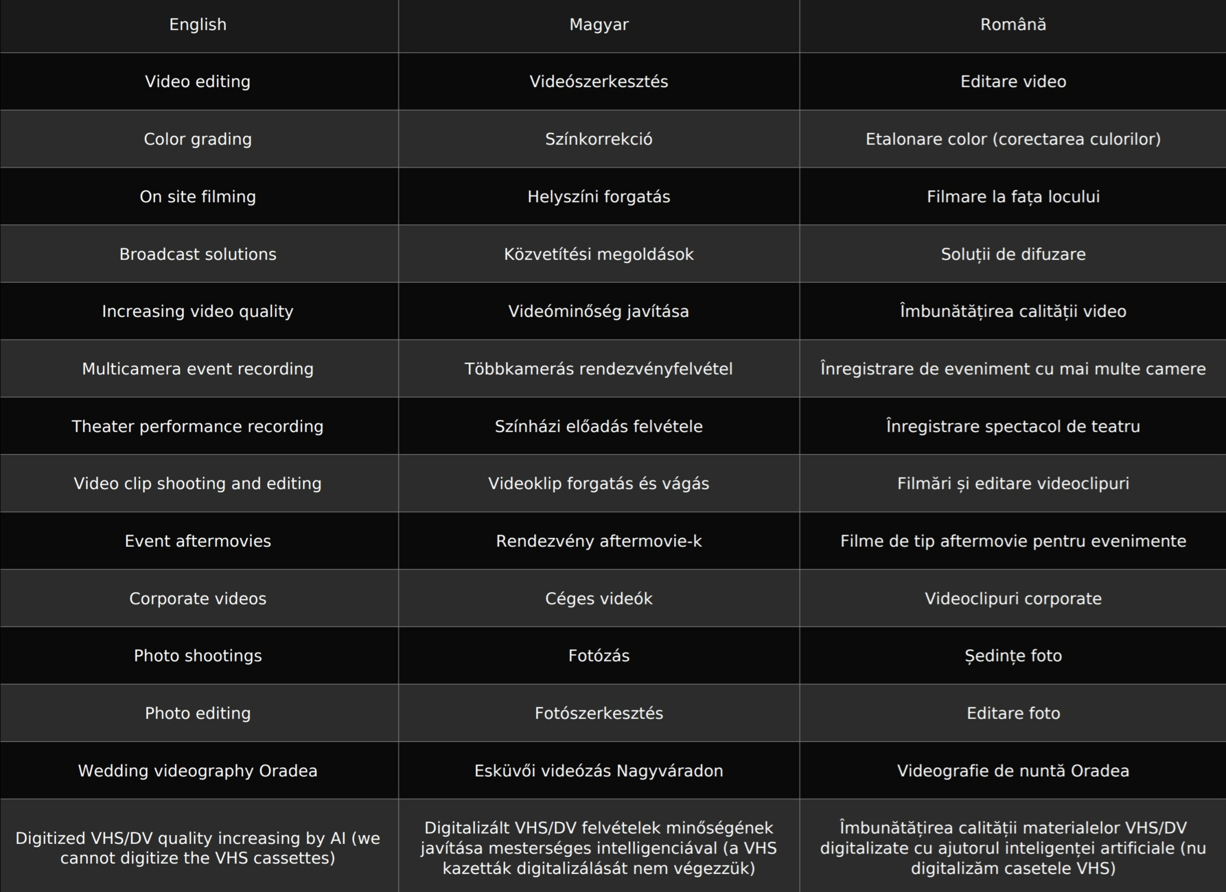 Wraith Dreams – Filmmaking & Video Editing; based in Oradea and working internationally
